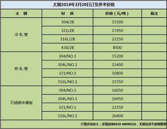 2019年3月20日太钢出厂订货价格: